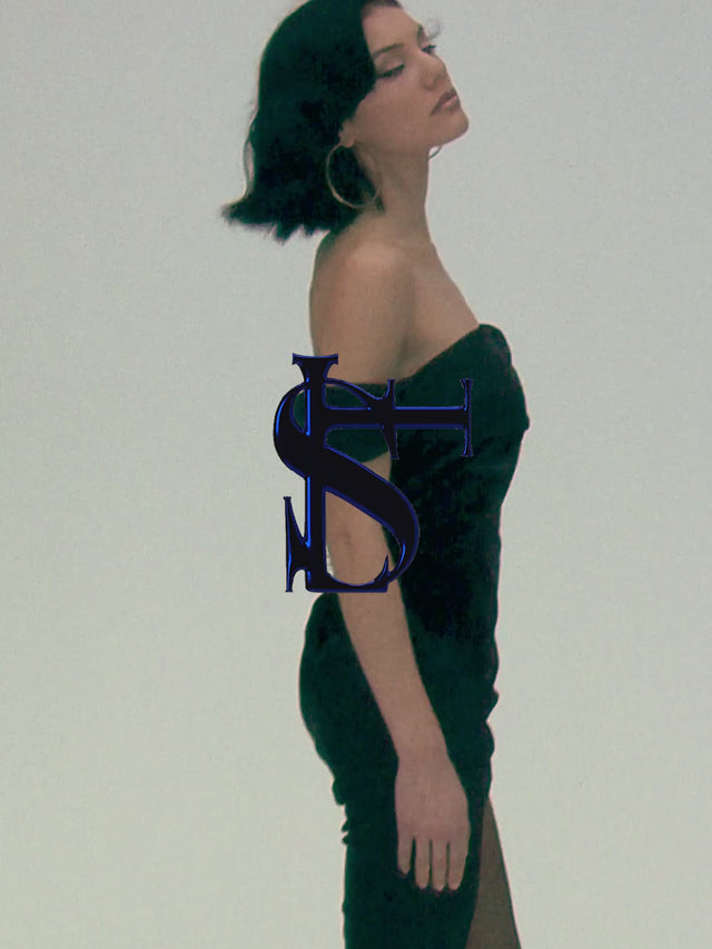 Off Shoulder Velvet Dress With Shiny Faric Details